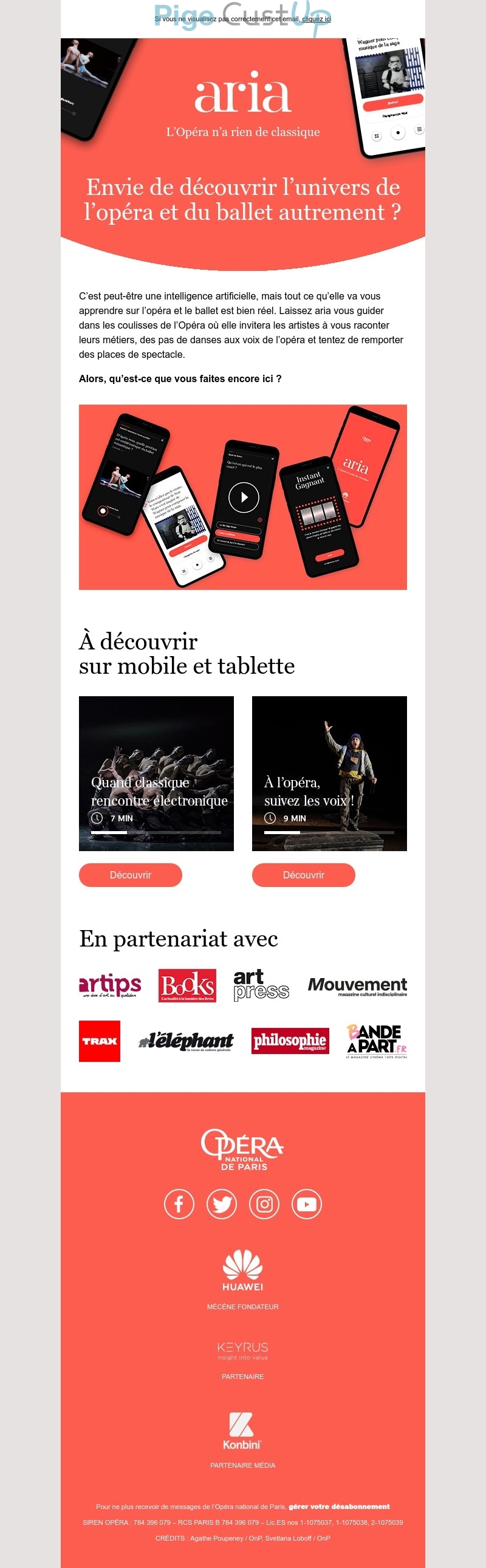 Découvrez tous les exemples de mails de la marque Opéra de Paris pigés par l'équipe CustUp